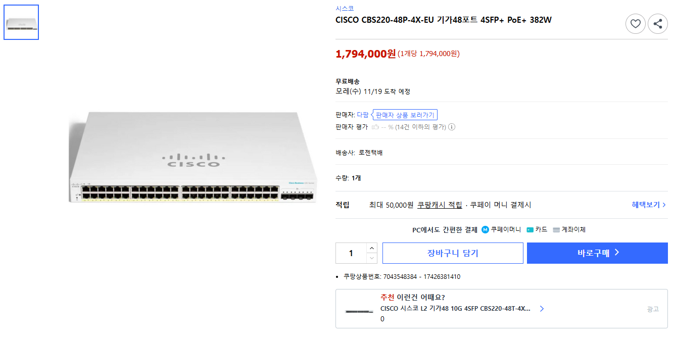 이거는 스위치고 네트워크 장비 판매 전세계적으로 1위를 하는 시스코의 장비도 100만원은 걍 옆집 철수네 강아지 누렁이의 뺨아리를 쓸어올릴정도로 비싸고